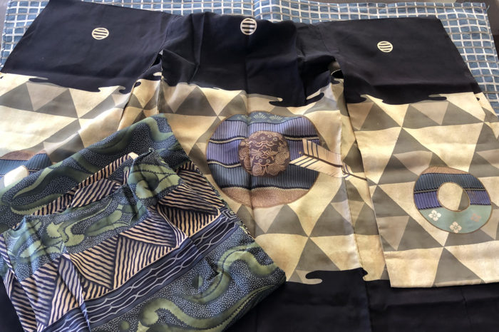 「うちのおじいちゃんが生まれた時に着たお宮詣りのきものを、今度生まれた孫に着せようと思って」とお手入れに持ち込まれました。80年ほど前に着られた、というか着せられたおじいちゃんから見ると、曽孫の子ですから玄孫[やしゃご]。80年ほど前にこのきものを誂えられたおじいちゃんのお父さんからすると、玄孫の子ですから来孫[らいそん]にあたる子が着るわけですから素晴らしく幸せなこと。流石に縫い糸や生地は弱っていましたし、変色している箇所も無数にありましたが、現代にはない色柄のきものはおろか重ね着の洒落たこと。「どこに頼んだら良いのか分からなかったのですが、とりあえず池田屋さんに持ち込めば何とかなるかなと思って」とは名案です。もとい、田舎の呉服店冥利に尽きます。お孫さんがどちらにお住まいなのかまでは尋ねませんでしたけど、七五三詣りまではお世話したい!