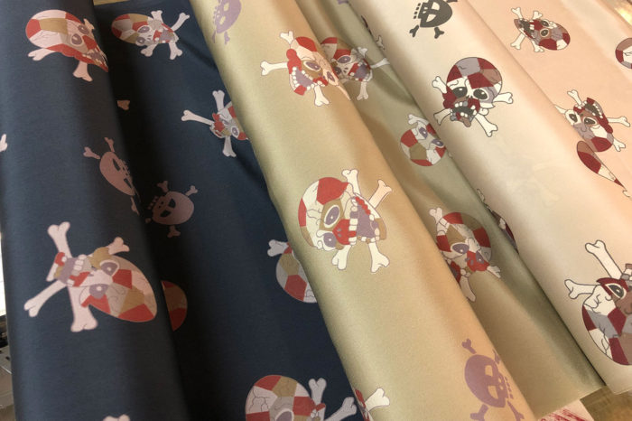 「以前博物館で見た浮世絵の<しゃれこうべ>が忘れられなくて、あんなのを探してるんです」とのこと。「全力で探します!」とお返事して3日。裏地にもってこいのさらりとしたいかにも滑りの良さそうな生地に染められた髑髏、茄子の化物、もはや定番化した風神雷神、そして極め付けは浮世絵の髑髏。きっとご満足頂けるはずとご来店を心待ちにしております。「浮世絵の髑髏を別染で!」ときっと言ってくださるはず。京都の職人が筆を走らせる浮世絵の髑髏。侍に襲いかかる迫力いっぱいの裏地を目にするのを、楽しみにしています。まずはお客様のご英断から。