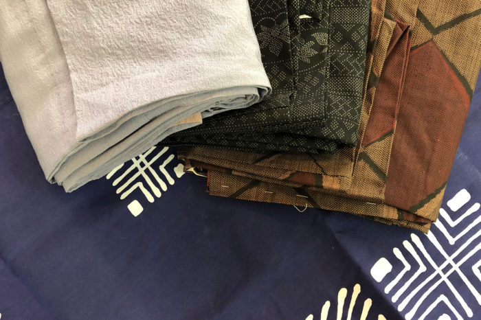 毎月7日と8日はお手入れ日和。本日は写真左から色無地(単衣)、塩沢(単衣)、大島紬(袷)の三枚が集結。