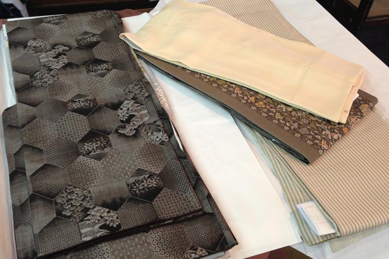 先日から何度かご紹介しているように、年に2回のお手入れキャンペーンではたくさんのきものや帯をお預かりしています。「池田屋さんで買ったモノじゃないけど、いいかしら?」なんておたずねをよく耳にしますが、そんなちっぽけなことは少しも気にしませんのでご遠慮なくお持ち込みください。トニモカクニモ、お手持ちのきものや帯が末永くお召し頂けることを願うばかりです。キャンペーンは「丸洗い」「洗い張り」「パールトーン加工」の3点のみですが、そのほかシミ抜きや寸法直しなども随時受け付けております。
