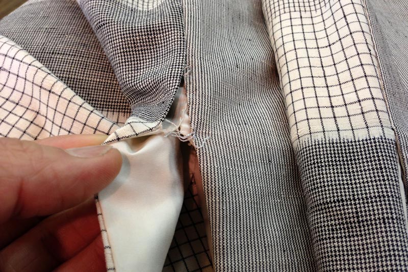 「このきものにはもうずいぶん手を通したから」そうおっしゃるお口元が緩んだ様子に、嬉しさを垣間見たのでお求めになった経緯をたずねてみると、「もう十数年前になりますけど、還暦祝いに娘から買ってもらったの。八掛もね、その時は地味だと思ったんですけど今じゃピッタリよ。袂をひっかけて脇が解れたから、そこも直しといてください」。