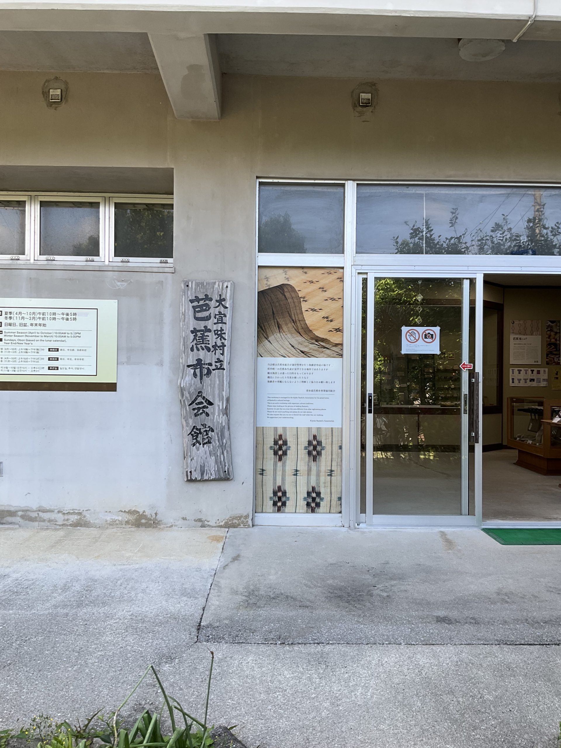 そして次はさらに車で1時間半ほど北上し、今回の旅路の最終目的地である大宜味村喜如嘉へ。言わずと知れた『芭蕉布』の里。これまでも沖縄本島を訪れる旅に行きたい!行きたい!と思ってはいましたが到達できず。今回は何としても!との想いでようやく辿り着いたのです。遠い!けど行ってよかったです。1階では芭蕉布についての動画を拝見して何度もため息を漏らし、2階では苧引き(うーびき)と言って木灰で煮て柔らかくなった芭蕉の原皮から糸になる繊維を取り出す作業が行われていました。芭蕉布は糸になるまでの道のりが長いんです。隣の部屋では琉球藍で糸を染める作業も行われていました。いやぁけど本当に感動しました。数年前にお亡くなりになった平良敏子さんが再興され技術の普及に尽力された芭蕉布は、これからも脈々と受け継がれことでしょう。すんばらしい!けどこちらの写真はありません。ぜひみなさんも一度見学に行かれてみてはいかがでしょうか?