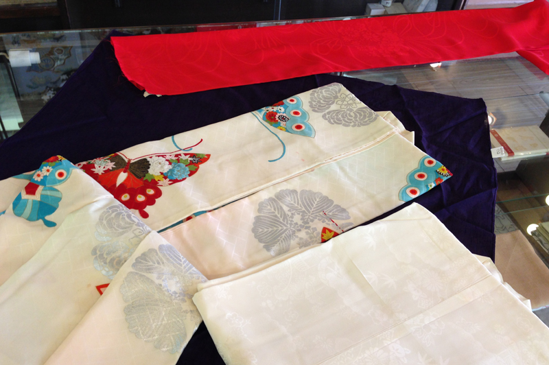 というワケで、写真の四ツ身に相当な想い入れを感じた今回がまさにソレ!だと思いましたので、なんとかご期待に添えればと考えましたが、結局のところ、「似たような色柄の生地を探した方がいいのでは」ということで、近くの手芸屋さんをご紹介いたしました。