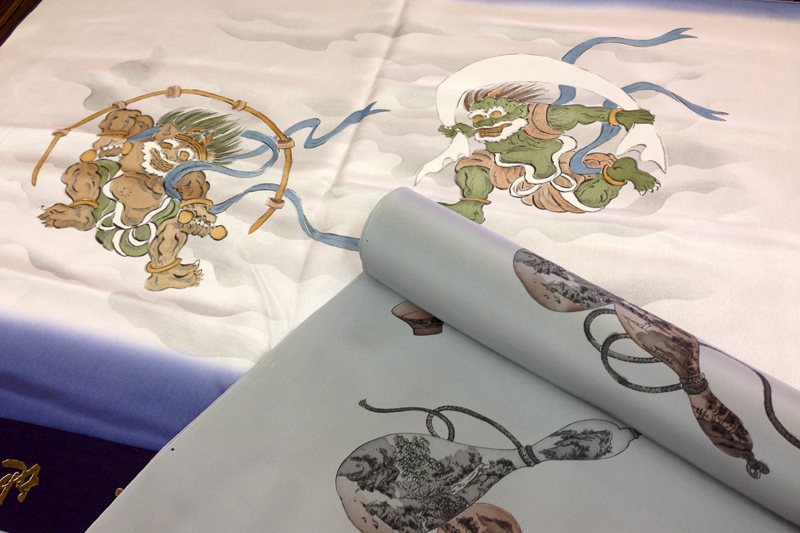 いずれにしてもお買い上げ頂くには違いありませんから大変有難いことなのですが…。写真の風神雷神や瓢箪のほか、龍虎、鳥獣戯画、獅子など、唐津くんちの装束となれば財布の紐が緩んでしまうのが唐津っ子の佐賀。もとい性。なのでしょうか。お仕立ても承っておりますが、これからの季節は本業のお仕立ても混みはじめますので、ご希望の方はお早めにお申し込みください!しかしまぁ、11月とは言えあれだけ汗をかくお祭りの装束に正絹を用いるなんて、本当に贅沢ですよね。
