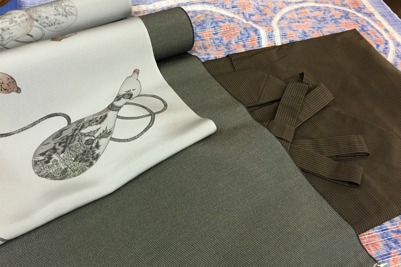 来月末に会社の元同僚の結婚披露パーティーにご参列のお客様。「せっかくだから羽織袴で行こうかと」だなんて嬉しすぎるきもの宣言。きものと袴はご先祖様から大切に受け継いだものが寸法も何とか間に合ったのですが、礼装に欠かすことのできない肝心の羽織が丈も裄も寸足らず。そこで先日一度ご覧頂いてたものの中から、現在お手持ちのきものとの愛称も考えた上で塩澤の無地に決定!妹さんお二人の各訪問着一式が御縁のお客様ですが、続いて奥様も訪問着をお求めになったことですし、「そろそろ僕の番です!」と胸を張って。お預かりしたご先祖様の袴は、珍しく寸足らずならぬ寸余りで5分(約2cm)短くすることに。
