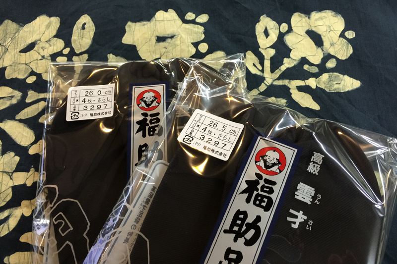 いよいよ間近に迫った唐津くんち。その時に履く足袋を一般的には石底雲才足袋と言いますが、こちら唐津では専ら「おくんち足袋」。今年は何故か出足が遅く、度々店内に嘆き節がこだましておりましたが、あと5回寝るとやって来る唐津くんちを前になって、ようやく順調に売れはじめました。しかも天気予報に生憎の☂マークが出てるもんですから、おかげさまで予備にもう一足お求めになる方が多くて嬉しいやら悲しいやら。中には御主人様の代理で買いに来られた奥様が「えっ、ウチは3日とも同じ足袋よ、もったいない。サイズは26.0cmか26.5cm。どっちでもいいけど、」って、あまり伸び縮みしないので「念のために寸法をご確認されてから、予備のもう一足が必要かどうかも御主人様とご検討願います」と提案差し上げて再びご来店を待つことに。