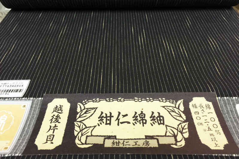「若い男性のお客様だった」とは応対した若女将。幼い頃に海外での生活を経験したという彼曰く「時代劇が好きで、休日にきものをさらりと着て生活したいと思っていました。唐津市内のきもの屋さんをネットで探して回ってみたんですが、どこに行っても絹の高価なのばかりを勧められて、僕の予算と桁が違うんです。最後に伺ったコチラでやっと良いのが見つかりました!」とのこと。生活着としてのきものなら、冬はやや寒いとは言え木綿の単衣が最適。この気持ちは日々きものを着て生活したことのある人にしかわかりませんよ。