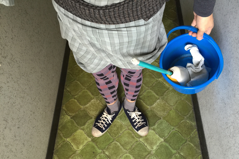 便所365日。 2015年1月12日2015年1月12日 若旦那本日のきもの 便所担当大臣を拝命して以来、尻っぱしょりとたすき掛けで。 冬は寒さと夏は暑さとの戦いなのですが、邪魔な羽織も脱ぎ捨ててご覧の通り。ですが、いざ取り掛かるといつの間にかすべてを忘れて便所と向き合っています。便所がキレイになると店全体もさらにキレイになったような気分で、今日も一日がんばるぞー!という気持ちになれます。時々忙しさにかまけてサボってしまったことに気づくと、あ、あぁ、となってしまいます。 最後に便所の紙様と消臭剤を確認して本日もキレイさっぱり終了。
