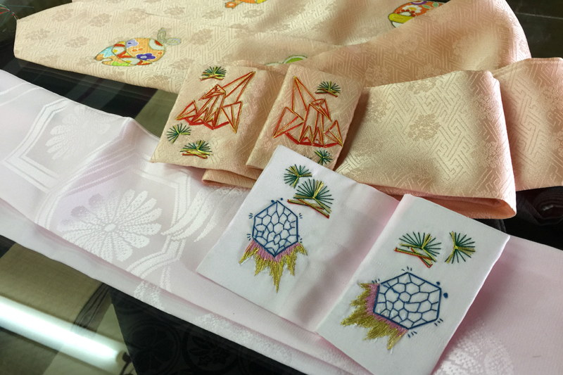 その方も随分お年を重ねられて、「近頃は目が乏しいから、そろそろ引退しないとね」なんてことになってしまいまいした。今時、一ツ身を生地から誂えるなんてことは少なく、仕立て上がったものばかり。当然のことながら紐飾りの刺繍なんてご存知の方も少なくて、こちらから提案しないとご要望はありません。以前はその仕立て屋さんも若かったですし、ご要望も多かったので写真の折鶴と亀以外にも幾種類も柄がありましたし、驚いたことにやり方を習って弊社の社員がやっていたこともあったのだとか。それにしましても、この技術と風習を次世代に残せるように若い仕立て屋さんに習ってもらったり、我々社員が今一度習って受け継がなければ、と。