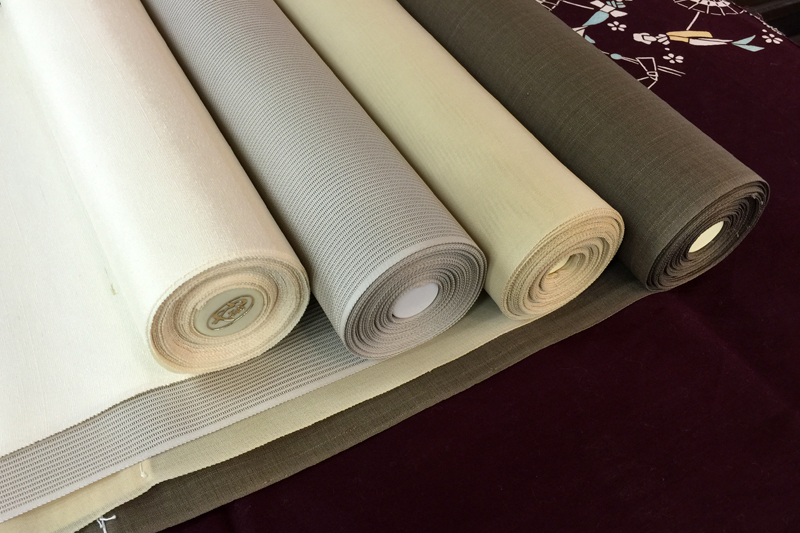 本日は「40歳を機に一張羅を誂えようかと思って」と同級生が来店。してくれたのは嬉しい限りなのですが、細身なのに手の長さが半端じゃないという呉服屋泣かせの彼。肩巾と袖巾を合わせた背中心から手首までの長さを裄(ゆき)と呼びますが、この長さは反物の巾によって構成されるために限りがあります。が、彼の寸法だと一尺一寸という最大級を誇る巾(俗称キングサイズ)の反物しか役に立たないことが判明。写真は右端を揃えて反物を転がしたの図。この中から彼の寸法が取れるのは手前の焦茶の無地のみ。