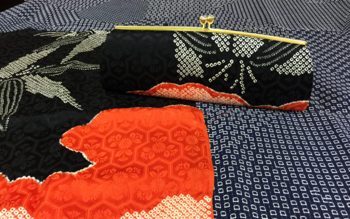 じゃじゃーん!総絞りのバッグー!!!!!赤い絞りの朱の松が印象的な逸品。その柄を活かすべくバッグの形も横長に。生地を贅沢に使用して表裏の柄も揃えてあります。台風を前に無事にお客様にお見せすることができそうでホッとしたり、早く見ていただきたくてそわそわしたり。今月末、日の目をみるまでに後は帯〆と帯揚、お草履などをご用意しなくてはなりません。ただただ心残りなのは、遠方でお召しになるので着姿を拝見できないこと。ちなみに、バッグへの加工賃は19,000円(税別)でっす。